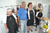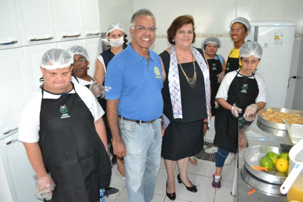 Uma passagem pela APAE de Guarujá, onde o clube mantém apoio permanente, permitiu que o casal conhecesse um pouco do trabalho lá realizado, incluindo as atividades do Curso de Panificação, onde os assistidos desenvolvem suas atividades motoras e criatividade, através do preparo de receitas variadas, como tortas e bolos, preparo de sucos, entre outros produtos preparados sob a orientação de profissionais responsáveis pela atividade.