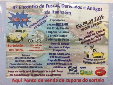 Todos os anos são vendidas Rifas e no dia acontece o sorteio de um FUSCA!!!! O Rotaract Itanhaém, já começou a venda das Rifas da festa que este ano acontecerá dia 04/09/2016.