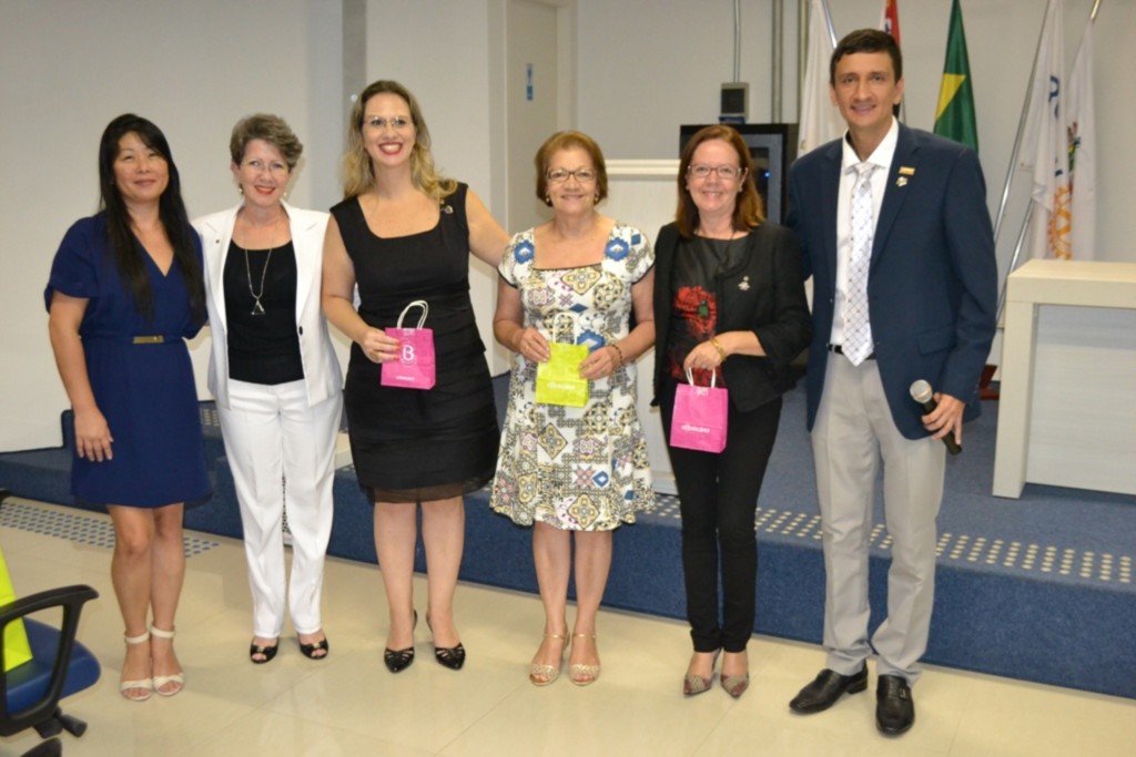 O presidente também aproveitou a ocasião festiva para homenagear as mulheres associadas do clube e demais senhoras presentes, com um mimo, representando a importância da mulher em Rotary e no mundo.