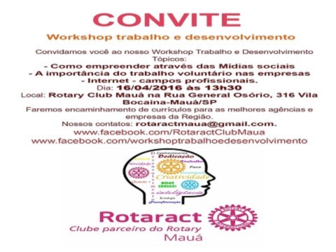 #Gratuito #Workshop #ProcurandoRecolocação #NovoEmprego #Tecnologia #Empreendedorismo #TrabalhoVoluntário #Rotaract #RotaractClubMauá #HorasComplementares