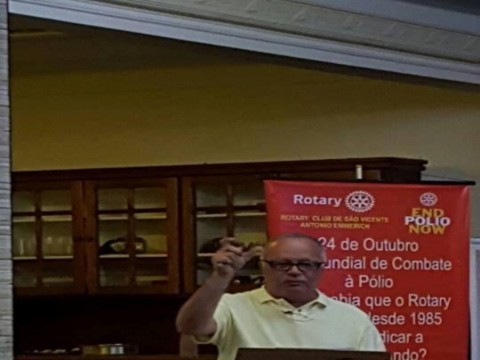 O instrutor do clube companheiro Roberto Martins falou sobre a Polio Plus e quanto nos falta para cumprirmos a meta de RI. Em entusiasmada palestra pode explanar sobre a nossa colaboração junto a Fundação Rotária neste ano e também sobre o Projeto de Subsídio Global que conseguimos junto ao clube parceiro da Alemanha e a participação finaceira da Fundação.