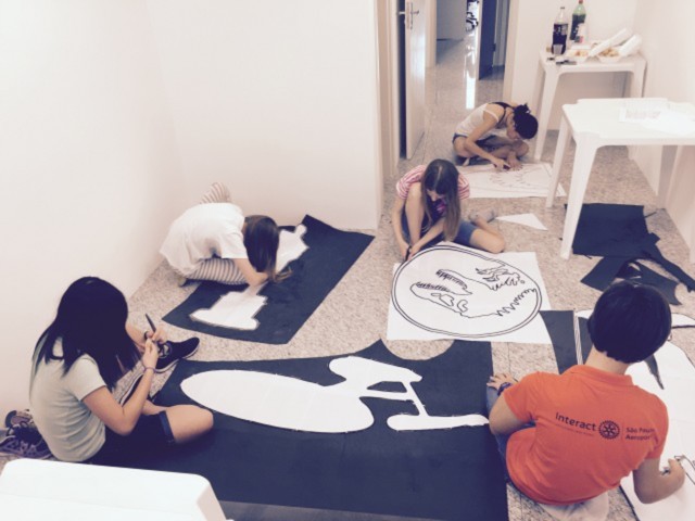 O Interact Club de SP Aeroporto trabalhando na preparação da decoração do Strogonoff Benficente, a ser realizado em 16/04, para arrecadação de recursos para seus projetos. O trabalho, na sede do Arquivo da Propaganda em Sao Paulo, feito pelas interactianas Diana, Isabela e Caroline, ganhou reforços dos primos da Presidente Caroline Carvalho: Thomas, Enzo, Daniel e Giulia.